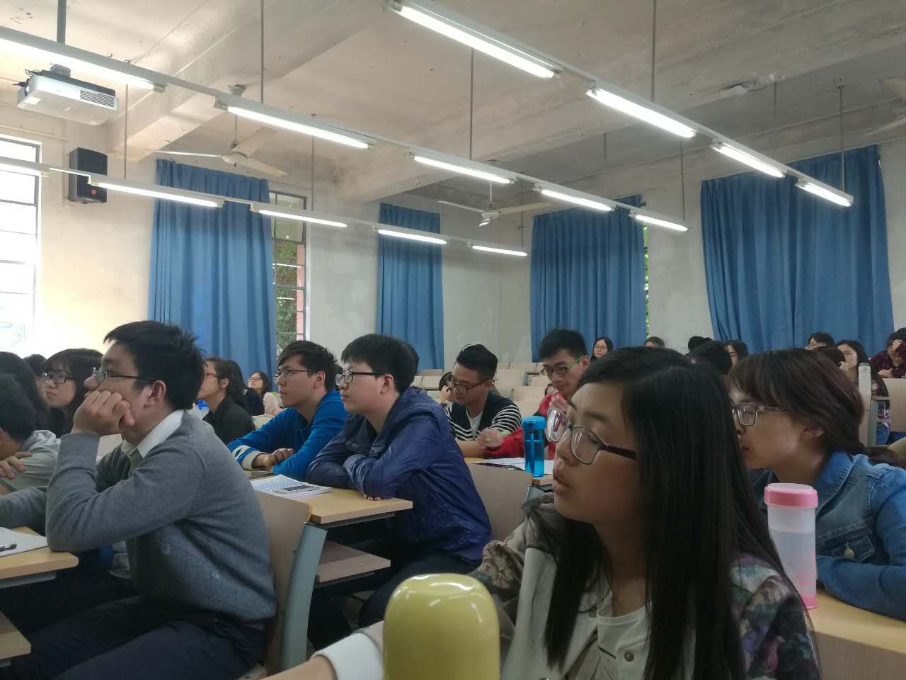同学们在聚精会神地听讲