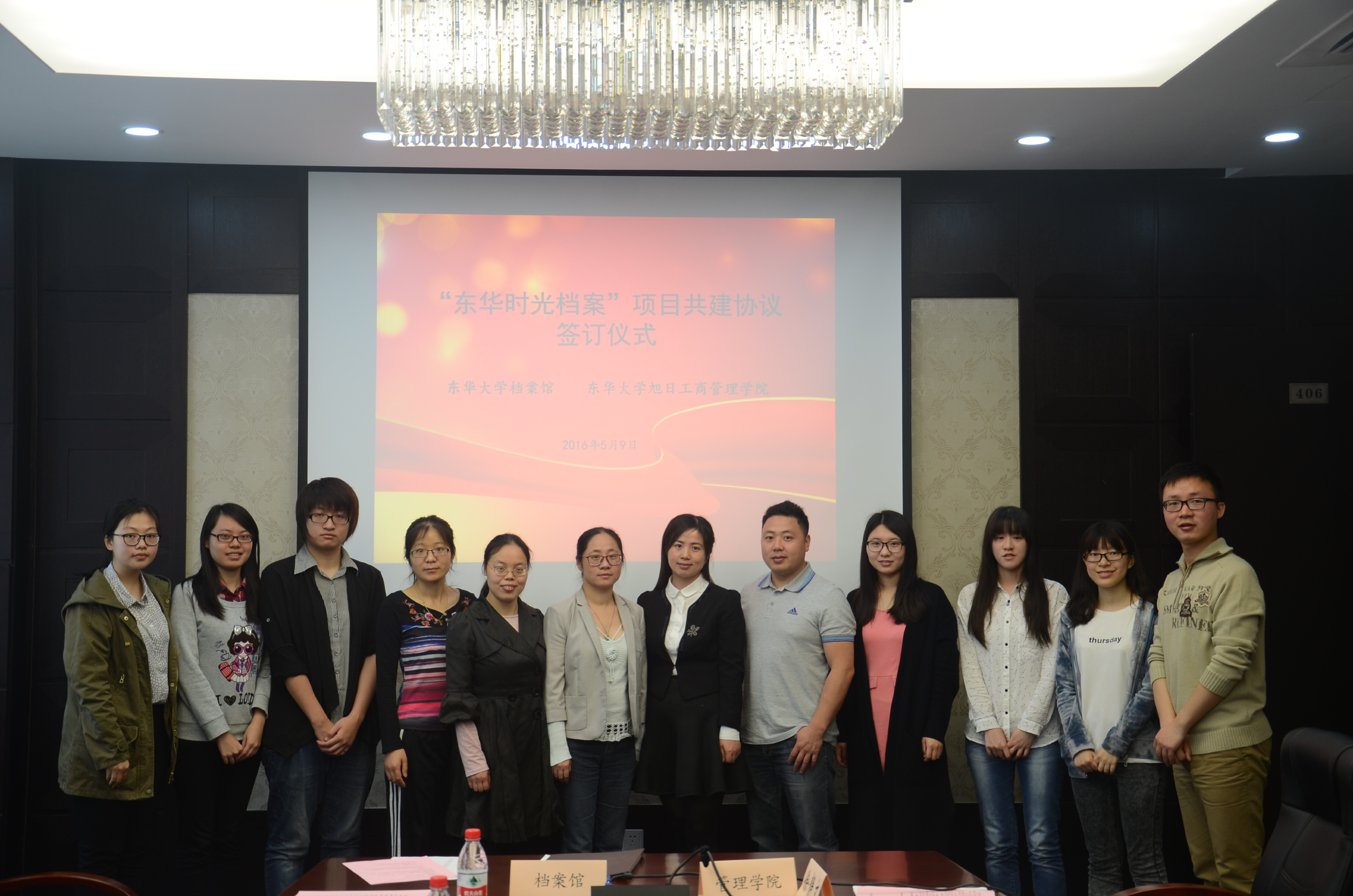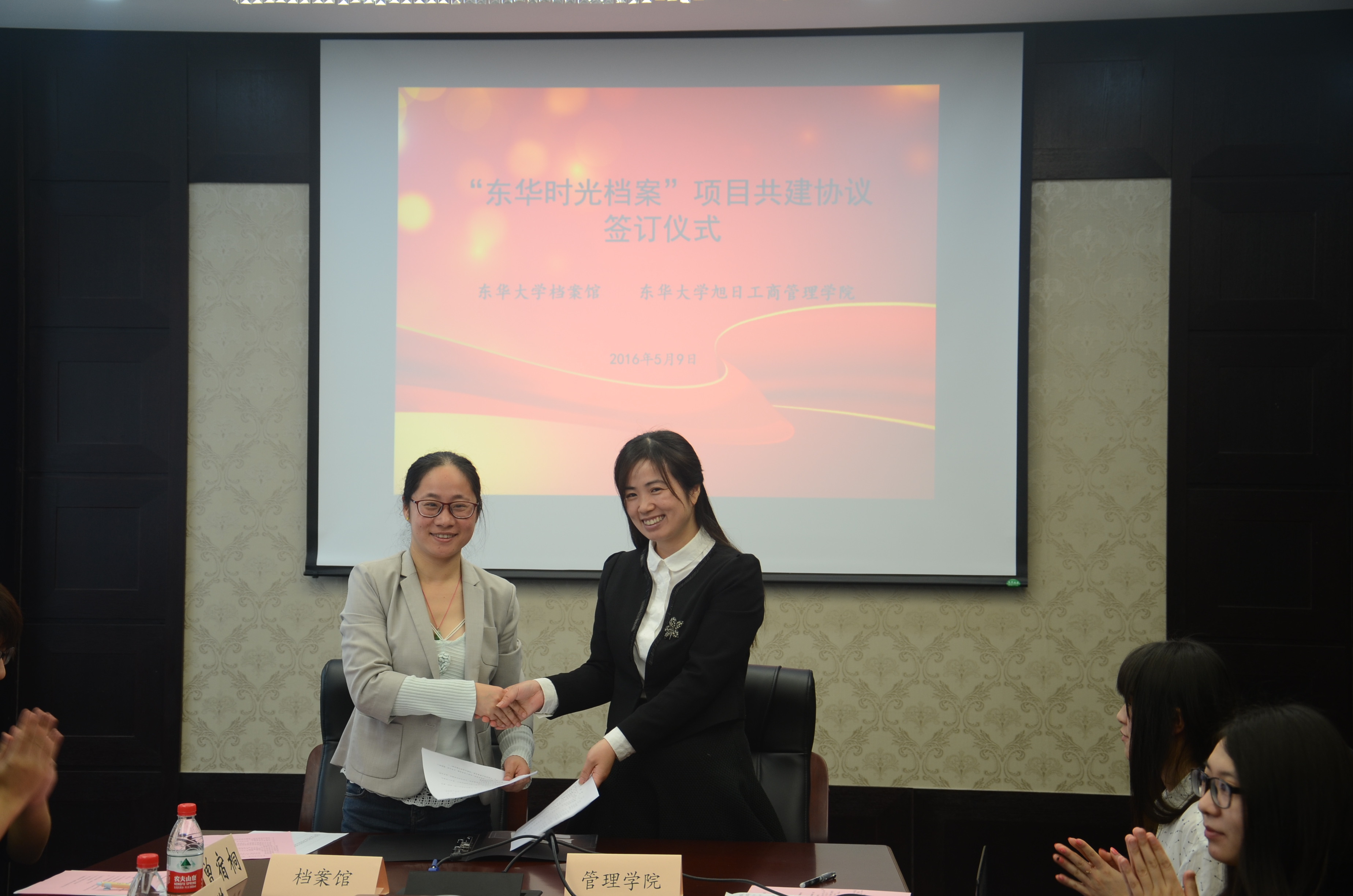 5月9日,“东华时光档案”项目共建协议签订仪式在延安路校区正式举行。档案馆馆长沈洁、人兽性交 党总支副书记叶晓燕出席,并代表合作双方签署协议。项目指导教师档案馆编研室张燕、崔敏华,学生管理办公室副主任蓝维春、分团委书记丁伟、学生党建主管吴娅琳以及部分志愿者代表参加项目共建仪式。 “东华时光档案”项目旨在“讲述东华故事,传承东华记忆,弘扬东华文化”,计划采用专题访谈形式,开展有关校史人物、实物、事件访谈,挖掘和积累口述校史资料。项目首期计划在党代会期间采访有关老领导、老代表,回顾东华发展历程,钩沉改革变迁中的东华故事。成果一方面作为档案馆口述校史资料留存,另一方面通过“东华校史”“DHU小管家”等多媒体平台宣传推广。 档案馆馆长沈洁为项目正式启动致辞。她从口述校史发展趋势、抢救东华记忆的必要性等方面介绍了项目动因。她期望经过一段时间的探索,能够“形成一个品牌”,即以口述校史、“互联网+”校史为特色的大学记忆品牌项目;“锻炼一支队伍”,凝聚一批有志于东华记忆挖掘与传播的专兼职力量;“推出一批成果”,以多角度、多形式的成果服务学校建设发展。 叶晓燕表示,学院党总支将对项目予以大力支持,通过依托人兽性交 分团委记者团和学生党建中心骨干力量,结合档案馆的优势,取得实效。她指出,口述校史不仅能增加同学对校史的了解,激发对学校的情感与认同,还能够锻炼学生在访谈、记录、写作、音视频制作等方面的专业知识,提高核心竞争力,更好地应对将来的工作需求。 志愿者代表徐静文、魏宇琪同学发言,表示将忠于历史原貌,记录东华的发展变迁,并在活动中提升锻炼自我。