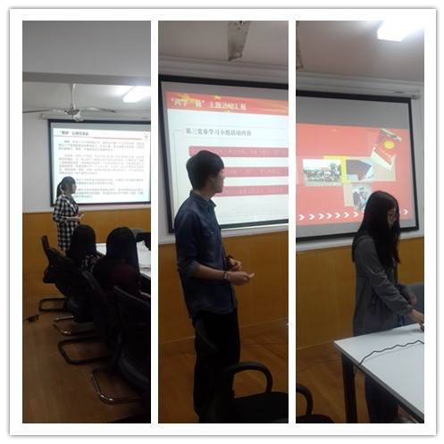 首先,三位“两学一做”组长汇报了各组的学习情况。张敏小组及彭骁然小组组织了交流会及积极分子的党章理论考试。在交流会上,张敏小组的各位成员针对“做合格党员”进行交流,她们在讨论过程中不断反思,不断提升自我。彭骁然小组则将心得写成通讯稿,分享了学习感悟。徐珂小组组织了线上线下的学习活动。线下,各位组员认真学习参考书目,讨论并汇报了学习心得。同时该小组运用易班,开展了线上交流活动。 接着是大四党员的经验分享,分享内容主要分为工作、考研、出国留学三方面。工作方面,有三位学姐分享了自己大学四年的感悟。陆赛楠同志针对银行来分享自己的面试经验。银行秋招一般在9-12月,大家需要关注各个银行的截止时间。银行的笔试题量大,可以提前练真题,熟悉题目。单面需要针对简历内容来准备面试问题,群面多为无领导小组,群面更注重发言的质而不是量。另外,面试前最好对该行的产品有所了解。朱冰燕同志认为实习过程要踏实。她说四大会计师事务所面试中需要关注各个企业的人兽性交。以德勤为例,德勤偏好有团队合作精神的员工,毕马威则更偏好有个人想法的人。在实习过程中,汤晓桐同志用一位正式员工的标准来要求自己。在遇到挑战时,她正视自己的不足,告诉自己要自信。同时她认识到英语对一份工作的重要性。在大学四年中,她有着自己的坚持,认真过好每一天。 考研方面,齐晓宇同志分享了她的考研经历。她认为大家需要有一个明确的规划,在明确自己选定的道路后要坚定地走下去,同时强调英语的重要性,并鼓励大家多参加学科竞赛。 出国留学方面,由阮静雯同志及王正道同志分享。阮静雯同志觉得认定了道路后要一往直前,而不是给自己很多个退路。王正道同志在大四时面对大学课程、语言考试及实习的三重考验时,仍不断努力向前。他提到实习中有责任心是至关重要的。