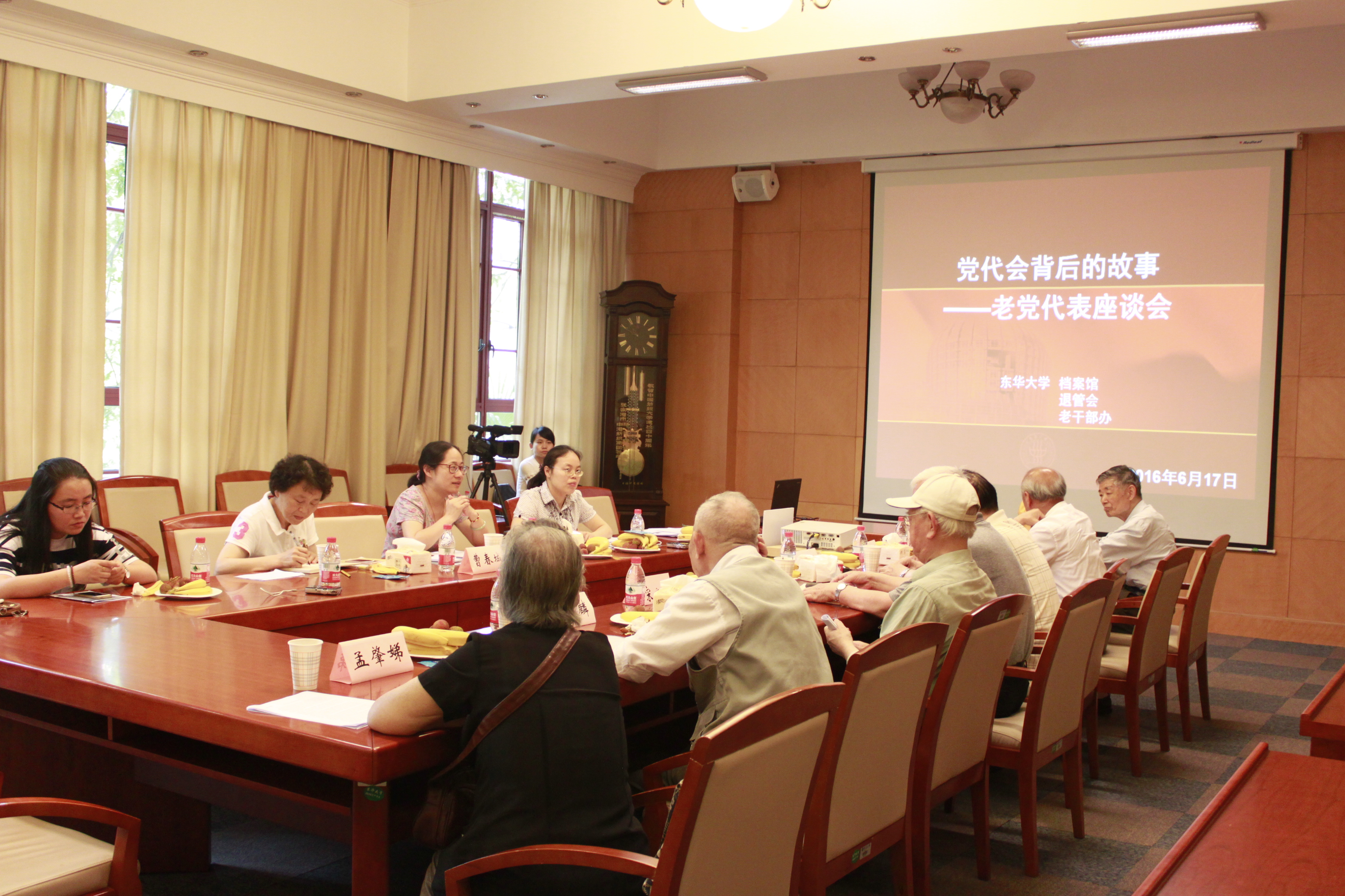 6月17日,“党代会背后的故事——老党代表座谈会”在延安路校区第二会议室召开。座谈会由档案馆馆长沈洁主持,退休党总支书记曹春城到会讲话。退休老代表沈焕明、孙俊康、宋心远、朱辉、周春麟、徐载熊、孟肇娣等参加座谈,结合自身经历,对历届党代会一一回顾,从学校定位、发展规划、教学、科研、党建等方面阐释党代会对学校发展的推动作用;同时,以老党员的身份,对学校工作及当代青年教师党员、学生党员的发展提出寄语与期望。