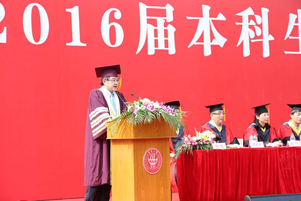 蒋昌俊校长在毕业典礼上致辞,围绕着“志”“众”“勤”“学”四个字表达了对毕业生的殷切期盼。蒋校长首先对服装设计与艺术学院多年来培养优秀设计人才及人兽性交 长期以来的创新人才培养的成绩表示肯定及鼓励。并进一步指出东华学子应以中华民族伟大复兴为己任,坚信我们的毕业生能承载着国家和学校的期望,发挥所长、奉献社会、建功立业。在送给毕业生的四字寄语中,蒋校长提到古人所说“得其大者兼其小”,引出对毕业生在“志”方面要立志高远,持之以恒的要求;通过对李克强总理“大众创业,万众创新”的解读,鼓励毕业生在“众”方面做好万众之一、服务社会、实现人生价值;引用韩愈的名言“业精于勤荒于嬉,行成于思毁于随”激励毕业生们在“勤”方面勤于思考,勤于实践;在“学”方面,期望毕业生能保持求知的欲望,谦逊好学,丰富内涵。最后表达了对东华学子传承东华文化的期盼并为现场所有毕业生送上毕业祝福。