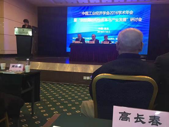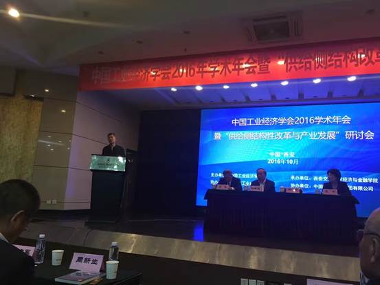 2016年10月15日,中国工业经济学会2016年学术年会暨“供给侧结构性改革与产业发展”研讨会在西安召开。本次会议由中国工业经济学会主办,西安交通大学经济与金融学院承办,《中国工业经济》杂志社、中国海外控股集团有限公司协办。我院高长春教授带领多位博士研究生出席参加了本次年会。 开幕式上,西安交通大学党委书记张迈曾致欢迎词,张迈曾教授对西安交通大学的建校史进行了简单介绍,指出学校在扩大物理空间的同时,也在不断扩展科技创新能力,致力为社会贡献思想和文化。中国社会科学院工业经济研究所党委书记史丹也致词,强调现阶段要推动供给侧改革,提出“一降一升”,即降低无效产能的供给,而提升有效中高端产能的供给。