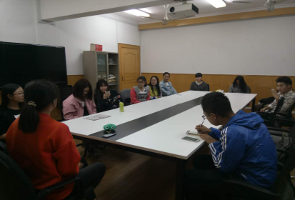 最后,我们就易班本学期的团建活动进行了激烈的讨论,为增进易班成员之间的默契程度和协调度,以便于促进易班各项活动的开展进程。 本次例会进展一切顺利,高效而有序。而且各成员也明确了自己接下来的任务,对此次的例会结果也很满意。期待易班在以后的工作中发展的越来越好。 撰稿人:游翔、丁伟 |