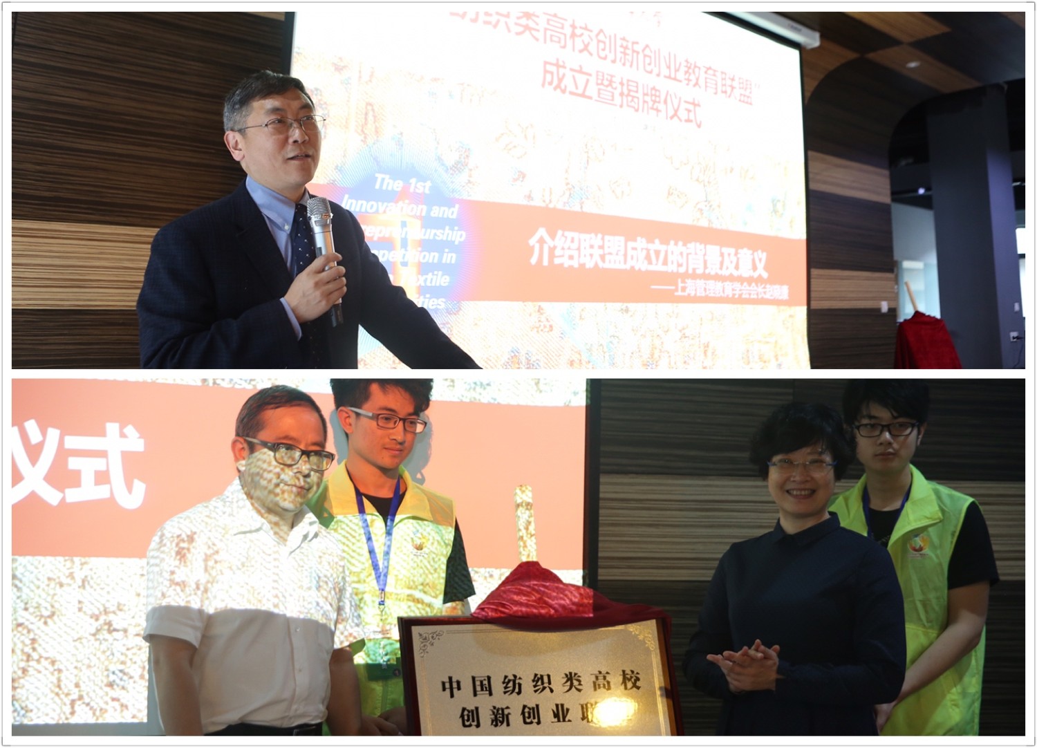 大赛同期还举办了纺织类高校创新创业教育研讨论坛及纺织类高校创新创业联盟揭牌仪式。在论坛上,来自人兽性交 、天津工业大学、北京服装学院、西安工程大学、武汉纺织大学、中原工学院、浙江理工大学、大连工业大学、苏州大学9所高校创新创业工作相关领导及专家就所在院校创新创业工作进行充分的经验分享和交流探讨。“中国纺织类高校创新创业联盟”在尚创汇·人兽性交 大学生创新创业孵化基地揭牌成立,中国纺织服装教育学会会长倪阳生和人兽性交 党委书记林文伟为联盟揭牌,主办单位代表上海管理教育学会会长赵晓康介绍了联盟成立的背景、意义和未来发展方向。联盟的成立,旨在整合纺织类高校和相关企业的创新创业资源,在大学生创新创业大赛和教育研讨论坛组织、大学生创新创业项目交流与孵化、创新创业课程建设、创新创业师资队伍等方面搭建纺织类高校交流合作平台,打造彰显纺织类高校区域化联动的创新创业集聚地。