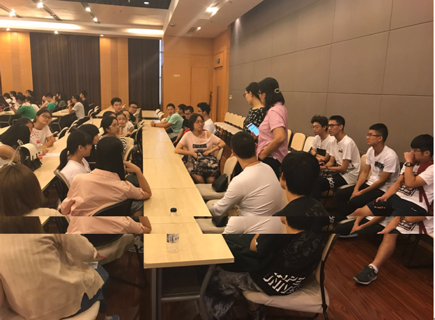 四位老师介绍完后,花老师将大家根据班级分为了四个大组,四位班导师应明幼老师,李庆颖老师,陈磊老师以及沈滨老师为自己所带的四个班级进行针对性介绍,并且热情专业的解答了同学们的疑惑,为同学们今后的生涯规划给出了自己的指点。同学们都积极提问,现场的氛围非常活跃。