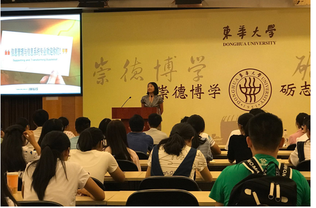 电子商务与物流管理专业的副系主任沈滨老师、信息管理与信息系统专业的系主任杨东老师都分别针对物流管理专业和信管专业为大家解答了一些基本的问题,包括以后的就业方向,发展规划,给了同学们很大的鼓舞。