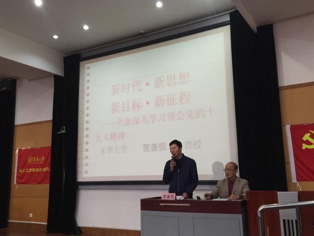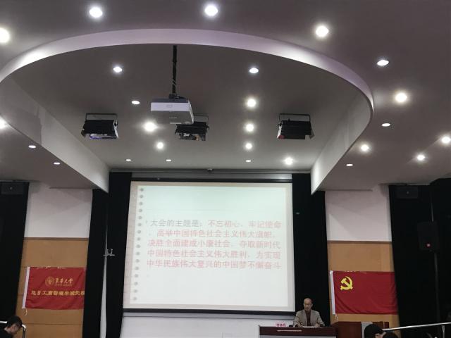 为了深入学习领会十九大会议精神,2017年11月7日下午人兽性交 邀请了人兽性交 十九大讲师团讲师贺善侃教授给学院学生党员和入党积极分子做了一堂精彩的报告,主题为“新时代、新思想、新目标、新征程,全面深入领会党的十九大会议精神”,人兽性交 党校主管老师以及学生工作办公室的部分老师也一起聆听了此次报告。 贺教授从十九大大会的主题以及大会报告的基本框架内容几大方面进行了深入浅出的解读。