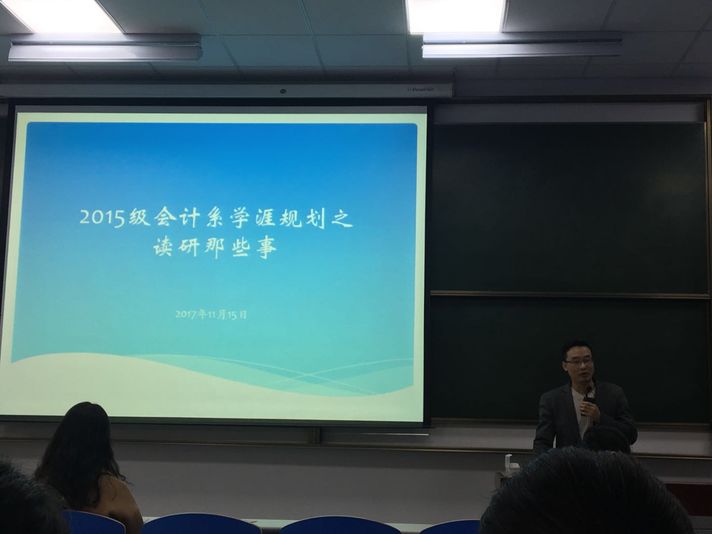 为帮助2015级财会专业学生更好地了解保研、考研、出国读研过程中的材料准备及注意事项,会计系学生党支部大四成员于2017年11月15日中午,在1教219教室开展了“2015级会计系学涯规划之读研那些事”为主题的经验分享交流会。 按照支部计划,此次交流分享会目的是对接2015级会计财务团支部,帮助同学们加深对保研、出国读研、考研等问题的理解与认知,提高其对人生规划与学业目标的重视程度,助力同学们在今后的追梦路上脚踏实地,勇往直前。分享会由支部书记徐老师主持。