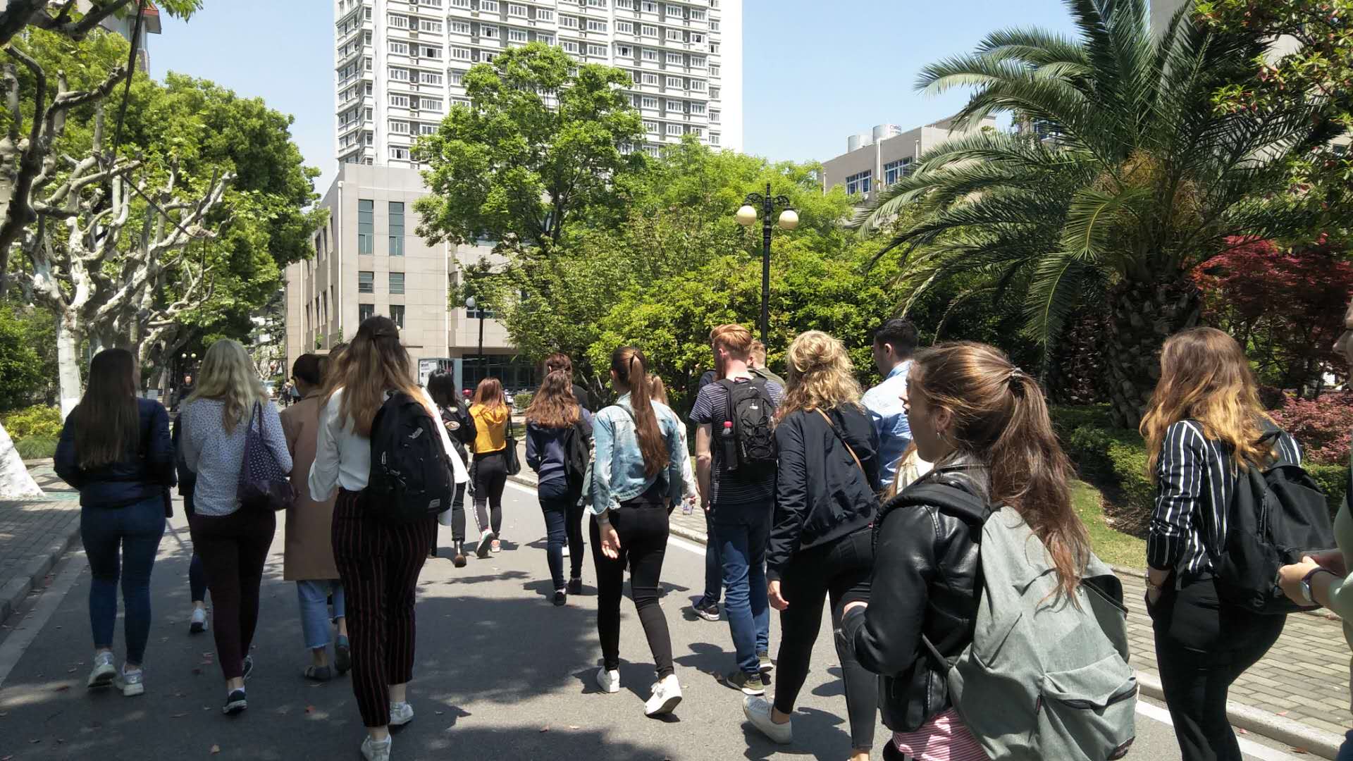 学术交流过后,我校师生带领布雷达学生前往具有特色的东华食府就餐,一行人浩浩汤汤,沿途感受我校的风光。