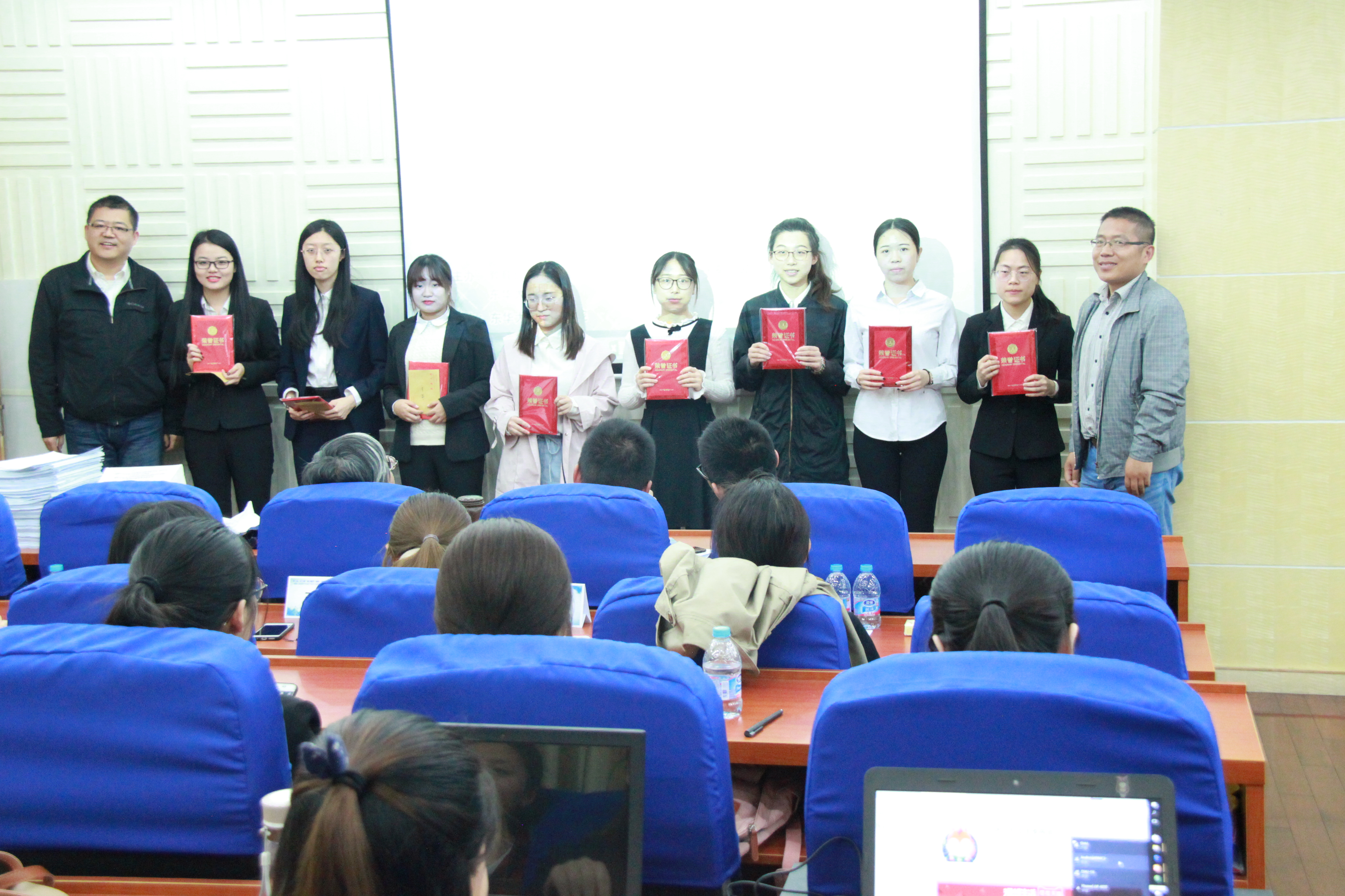 (荣获一等奖的队长与颁奖嘉宾合影留念)