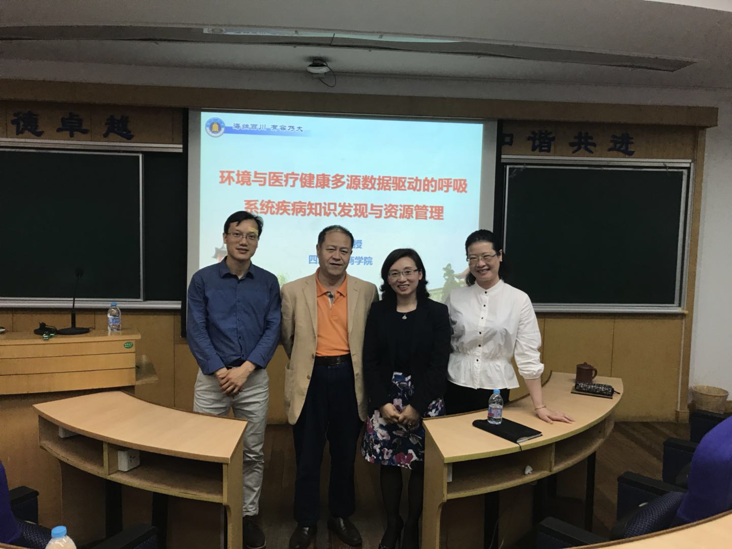 2018年4月23日下午3时,四川大学罗利教授为全院师生进行了一场题目为“环境与医疗健康多源数据驱动的呼吸系统疾病知识发现与资源管理”的学术报告会。学院师生济济一堂认真聆听了报告,教室里几乎座无虚席。