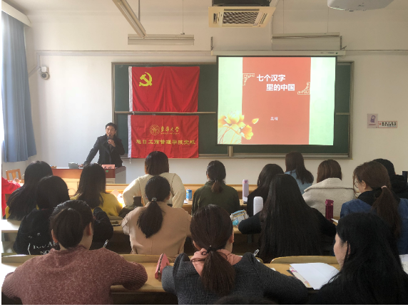 识中国汉字,习传统文化——记人兽性交 人兽性交 2018年预备党员培训班主题党课 2018年11月27日,人兽性交 党政办公室主任吴靖老师在二教204教室为人兽性交 预备党员带来了一堂以“七个汉字里的中国”为主题的生动的党课。
