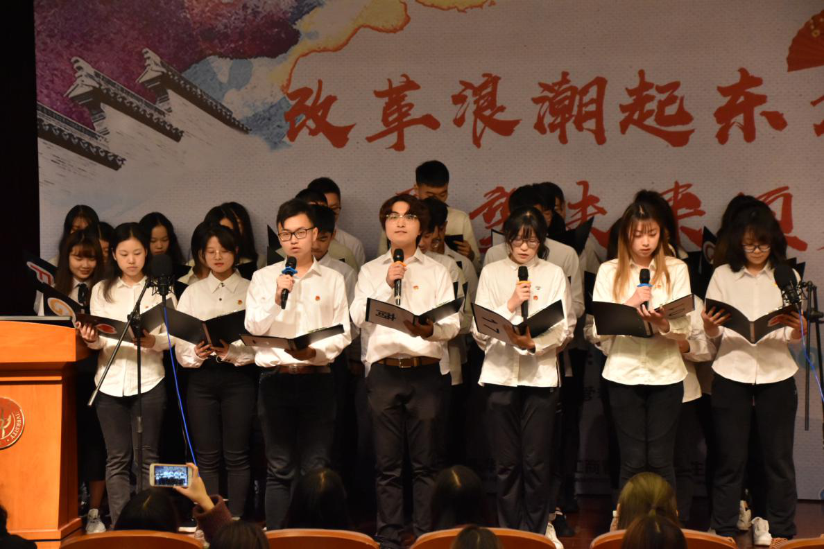 “在这片神奇的土地上,又一次萌发了腾飞的希望,历史的巨笔将描绘出新世纪更加灿烂的辉煌!” 国贸1701带来的《华夏崛起的希望》道出了他们对改革开放的称赞。少年智则国治,少年富则国富,少年强则国强。每一位中华少年,都是神州大地上冉冉升起的新星,也是构成祖国未来的希望。1978年,中国共产党用改革开放的伟大宣示把中国带入一个崭新的时代。