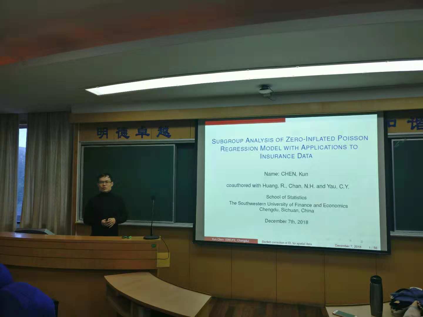 师生进行了一场以“Subgroup Analysis of Zero-Inflated Poisson Regression Model with Applications to Insurance Data”为主题的学术报告会。报告会在旭日楼306教室举行。