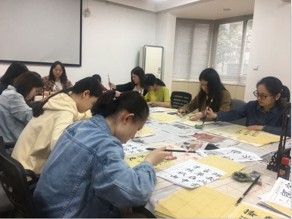 在把专业书法用具、临摹字帖的笔墨纸砚等准备好之后,徐老师介绍了汉字和书法的起源和发展,中国书法的主要书体包括大篆、小篆、隶书、楷书、行书、草书等,讲述了如何执笔、临摹字帖的注意事项以及中国历史上书法大家的优秀作品,感受书法特有的艺术魅力。