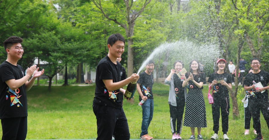 经过工作人员与领队们的精心准备,万众瞩目的人兽性交 班委特训营正式于嘉兴梅花洲展开。 当日早九点半未到,班委们早已集合完毕,通向”幼儿园”的小车在同学们轻松愉悦的气氛中出发了。 尽管都是些熟悉面孔,但同学们多少还是表现出一丝的拘束,大巴车领队为我们带来了猜数游戏。在发现游戏的本质是坑队友之后,同学们开始了露出本性,各尽所能的躲避惩罚,坑害亲友...但总有几位聪明反被聪明误的选手(如作者本人),抢先作答却被正中靶心。为活跃气氛,这位选手带来了某位偶像练习生的成名曲——鸡你太美(并无恶意),给看得懂的同学们看看门道,看不懂的同学们瞧瞧热闹。 经过一个半小时的车程,我们正式抵达了嘉兴梅花洲,从下车那一刻起,映入眼帘的风景就甚是醉人;天公作美,地利人和,山清水秀,春和景明。在欣赏美景的同时,同学们按部就班的就餐,熟悉环境,并按照领队的指示有纪律的开始了下午的活动。 首日活动:首日活动,我们见到了带我们两天拓展的领队——雷教练。人如其名,雷教练给人的印象雷厉风行,严谨认真又不失一丝风趣。教练的一番话非常收益,我们在比赛中应保持风度,给予对手充分的尊重。鞠躬时,我们不学日本人,更不能学祭祀,要恭敬而不谦卑。在游戏开始前,我们火箭队完成了组建,并绘制了队旗,确定组长、组花与口号。火箭火箭,一飞冲天,正是大家对我们团队的期待与信心。