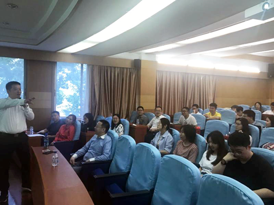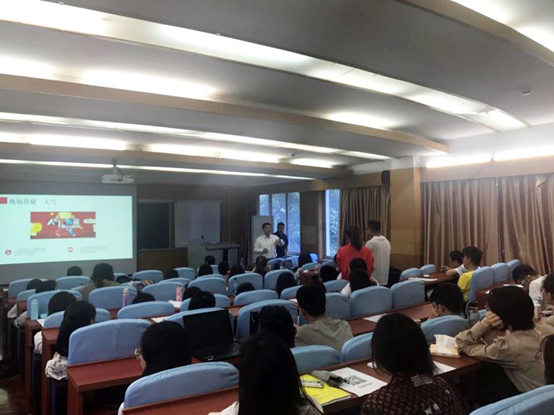 5月26日周日上午,暴雨如注,天气不好难挡同学参与热情,9点20分,在旭日楼211教室,“证券行业分析与券商职业前景介绍——暨《股东来了》走进人兽性交 ” 活动拉开帷幕。光大证券财富管理中心总经理王智首先给到场同学介绍证券行业现状、证券市场生态体系,包括投资规模、从业人数,还跟同学互动,送出两张彩票,让同学感受价格本质与心理估值的差距。他还给大家介绍了CFA考试的内容。