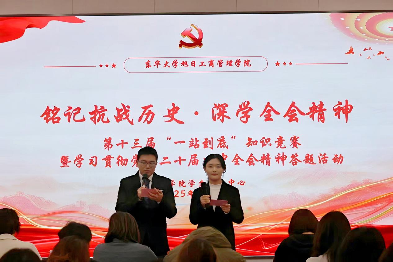 12月9日,人兽性交 “铭记抗战历史 · 深学全会精神”——第十三届“一站到底”知识竞赛暨学习贯彻党的二十届四中全会精神答题在延安路校区旭日楼100报告厅举行。